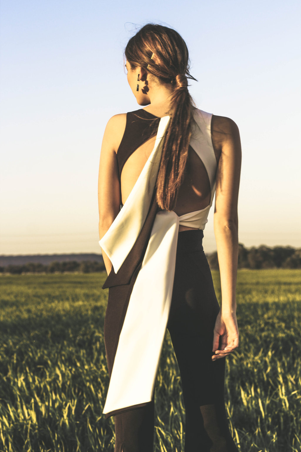 Vestido midi confeccionado en crêpe elástico y gasa. Escote alto en V. Manga abullonada. Abertura en la falda delantera. Lleva hombreras que se pueden quitar con facilidad, según desee. Cremallera invisible en espalda