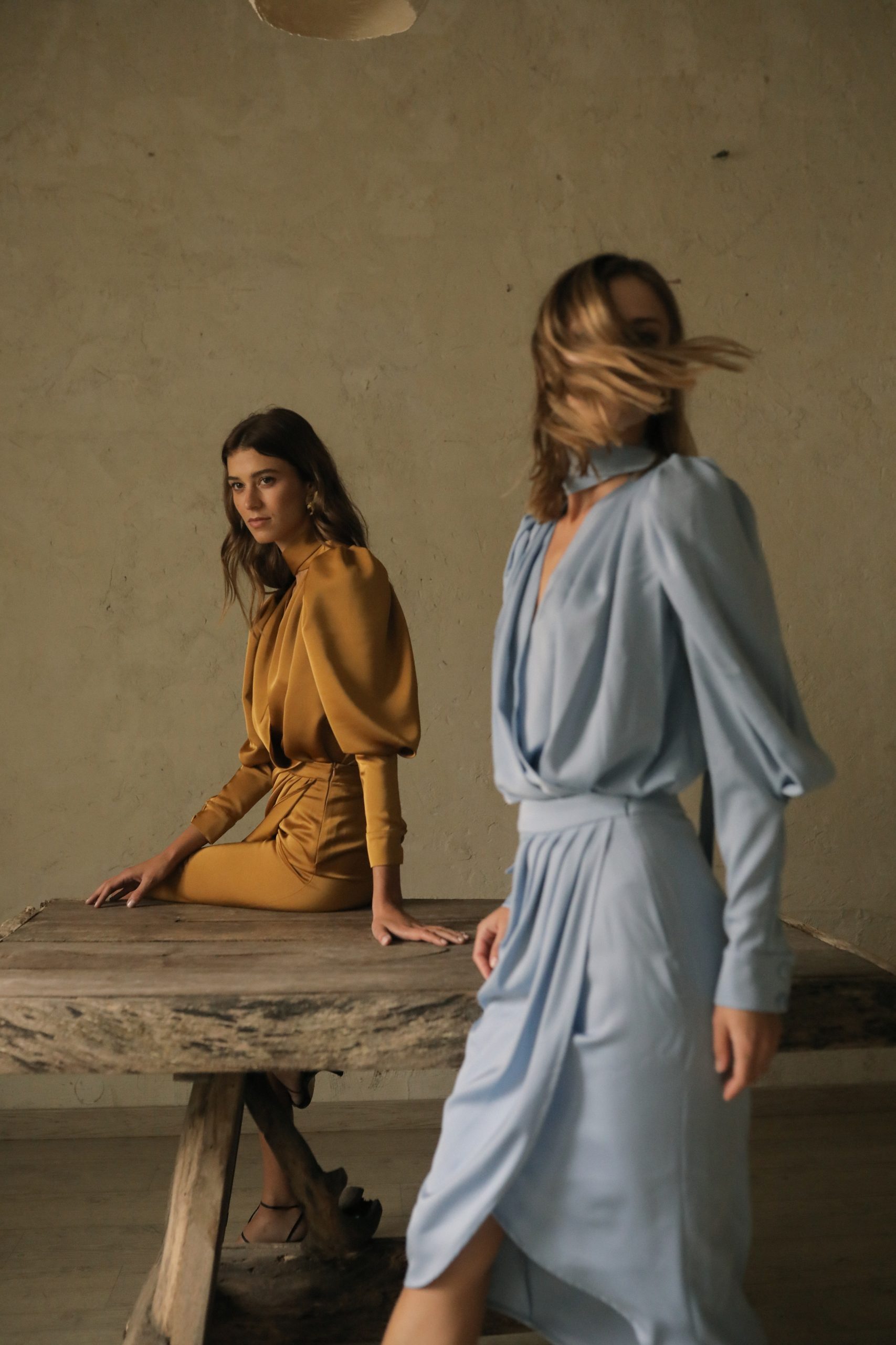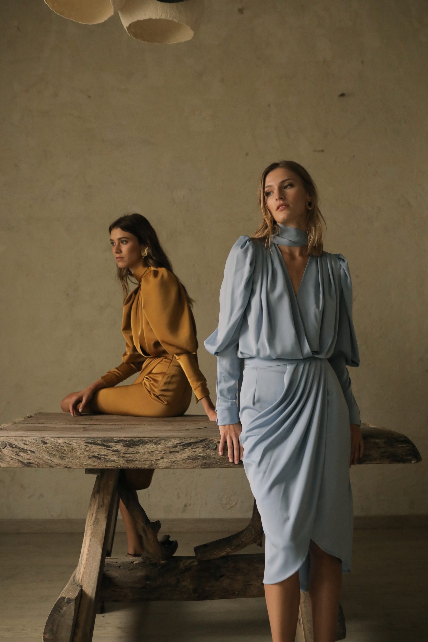 Blusa suelta con drapeado desde el hombro en delantero. Confeccionada en crêpe satén.