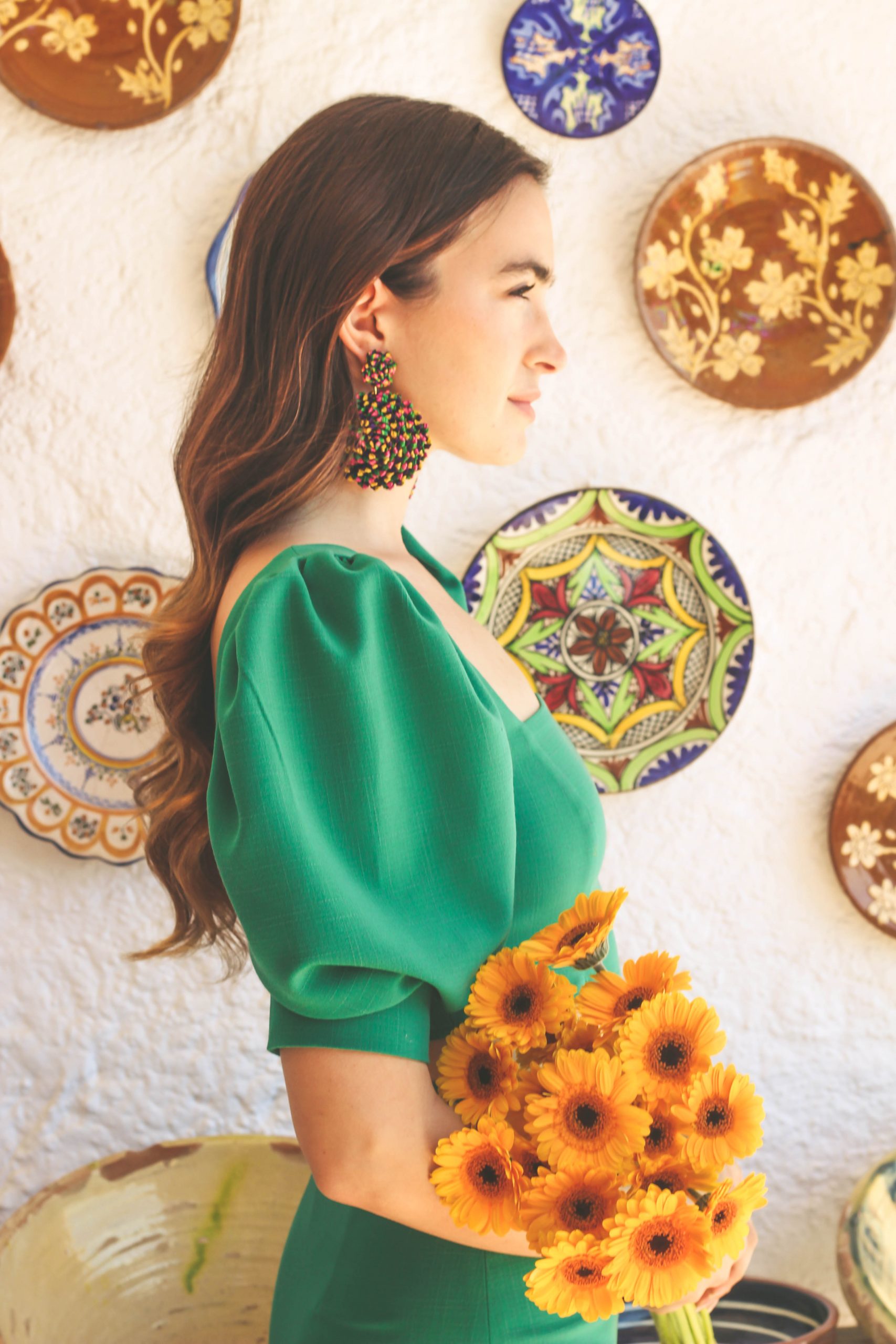 Top de escote cuadrado delantero y espalda. Mangas abullonadas Cremallera invisible en costado.