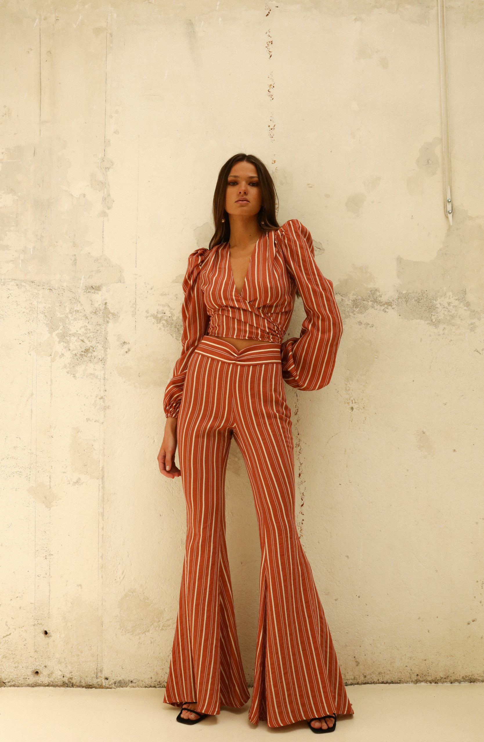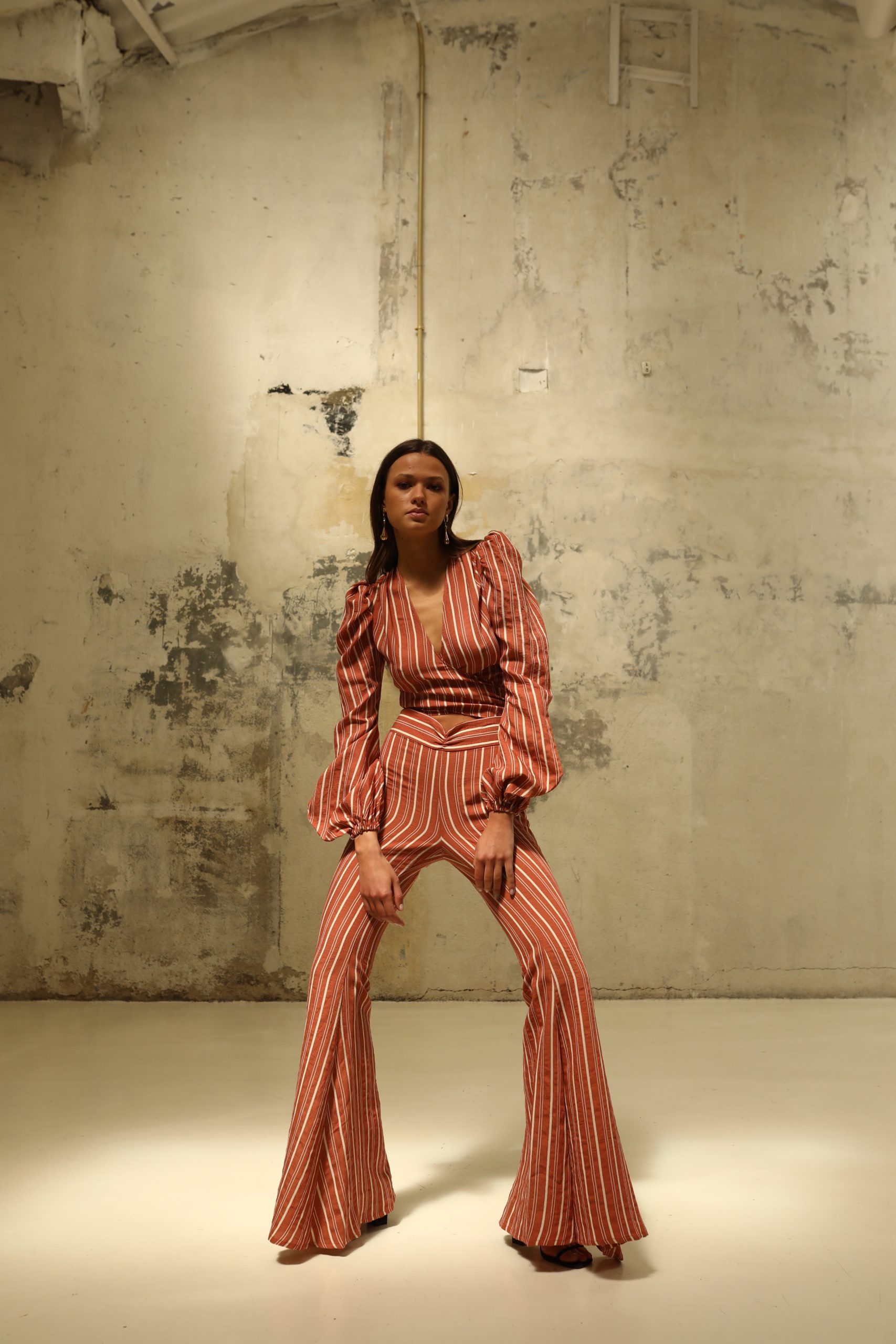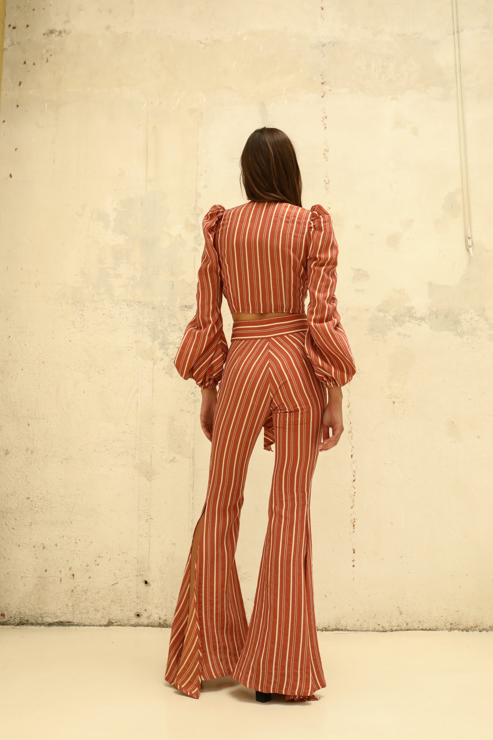 “Tallan Pequeño” Pantalón maxi campana con abertura en el lateral hasta rodilla.