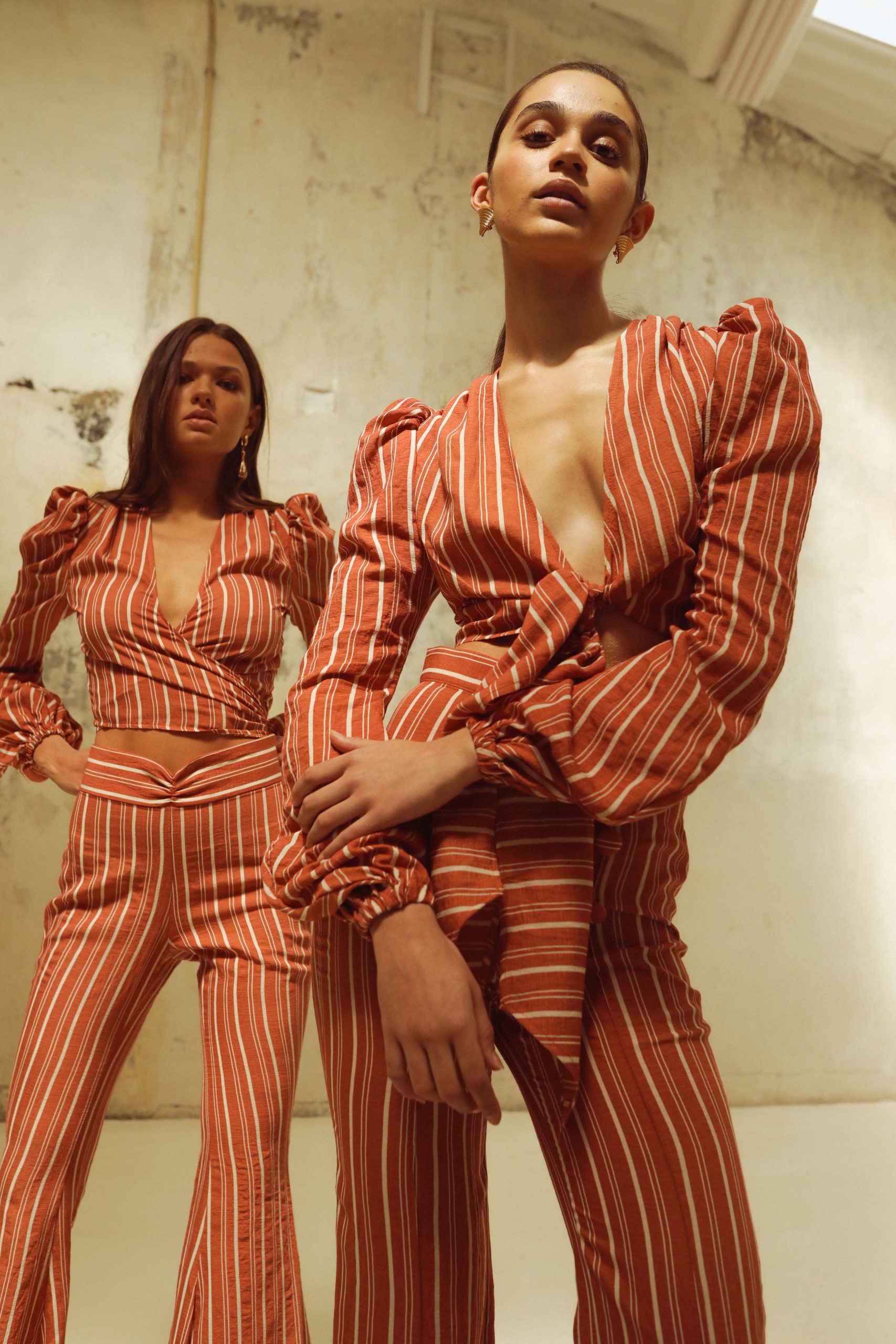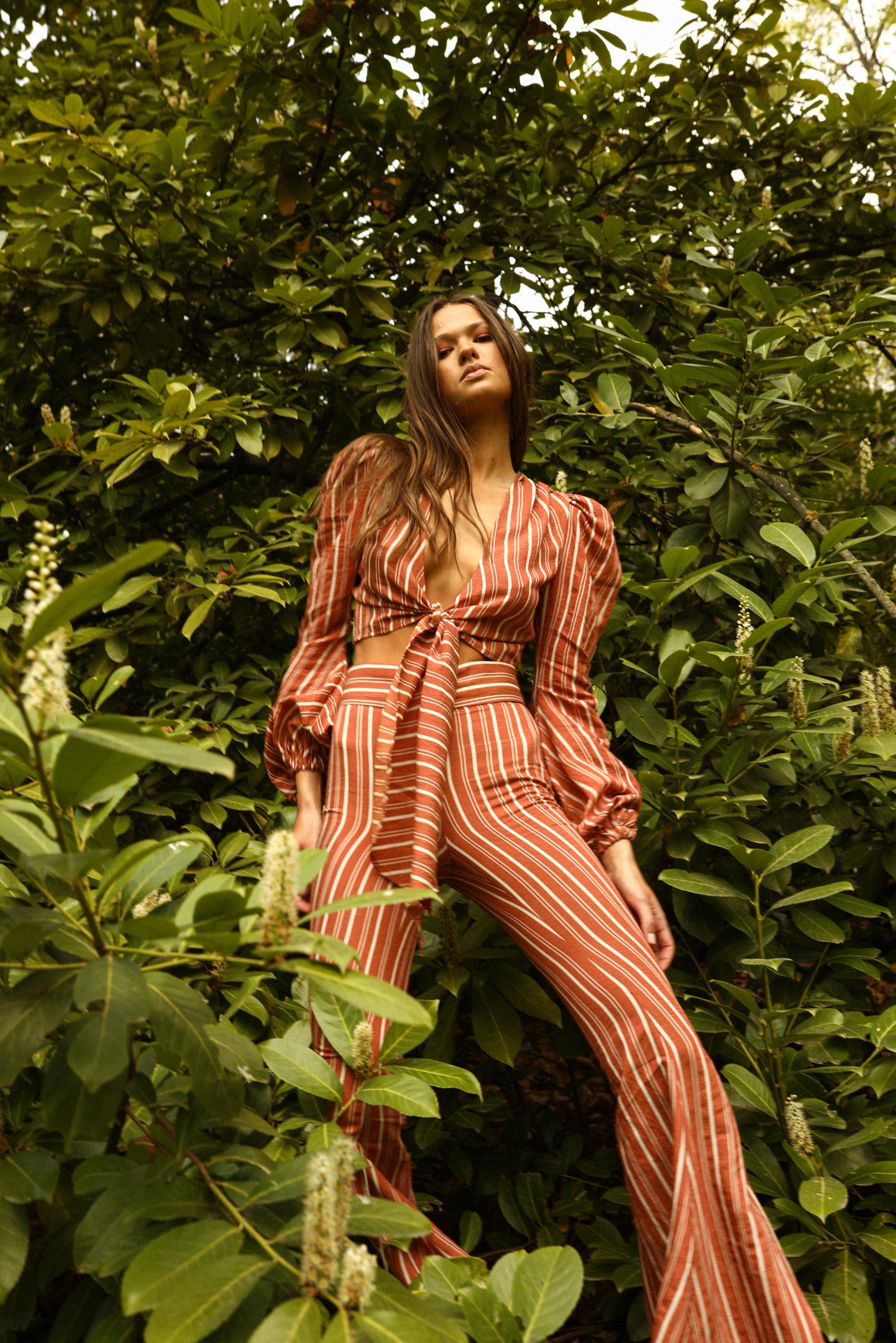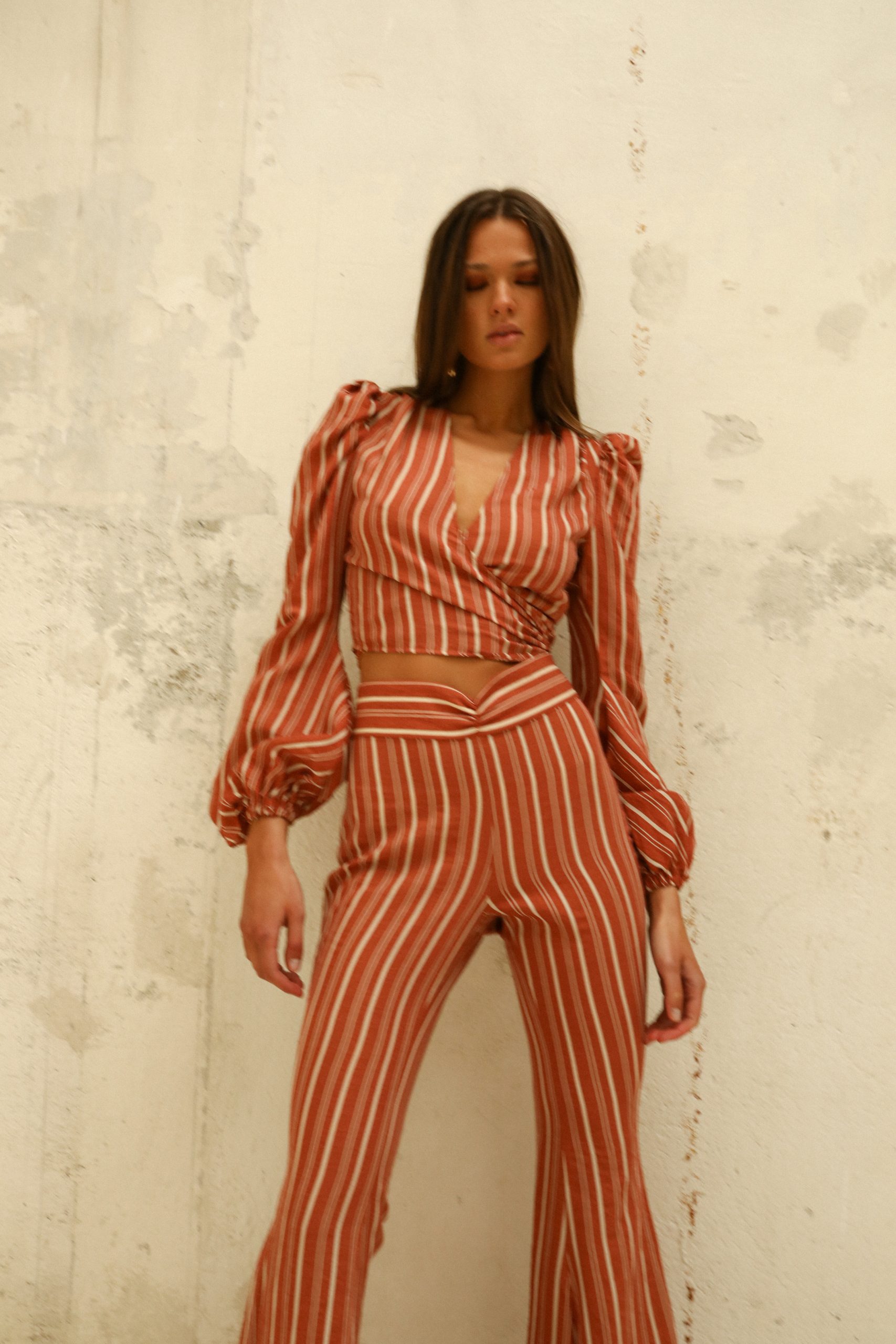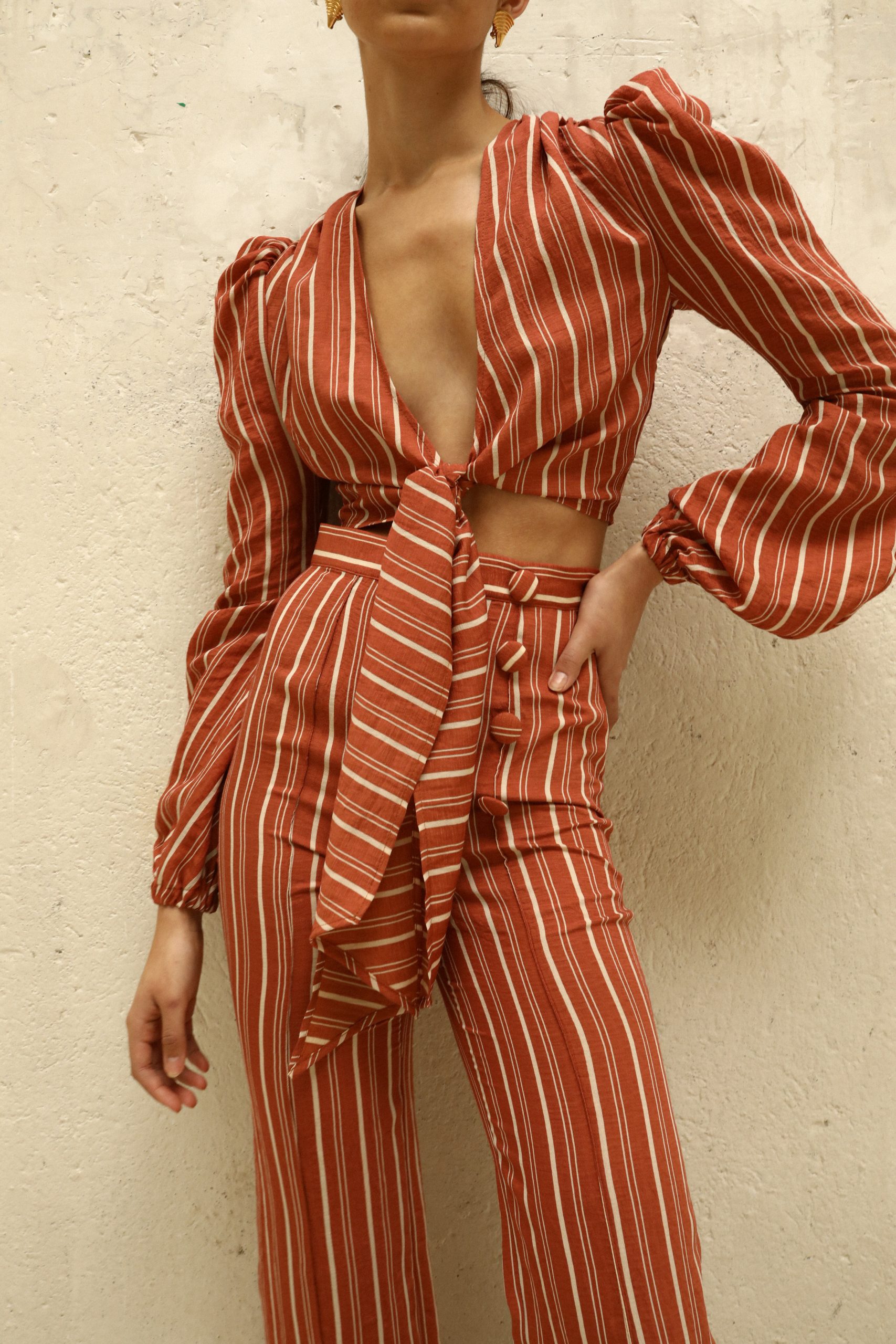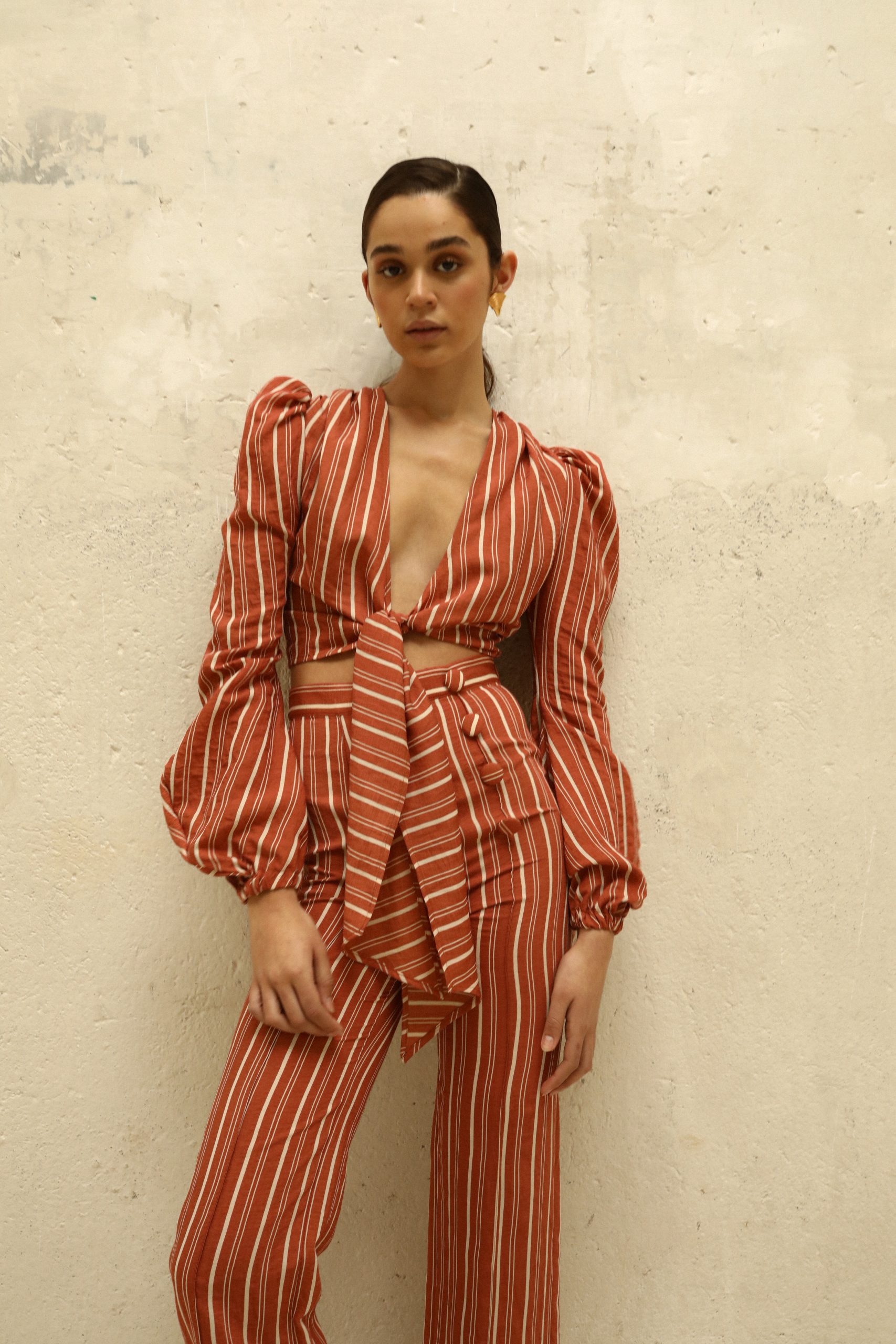 Confeccionada en tejido caído en crepe y escote en v, con manga larga abullonada y elástico en puño.