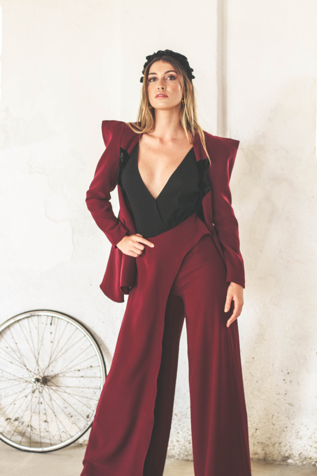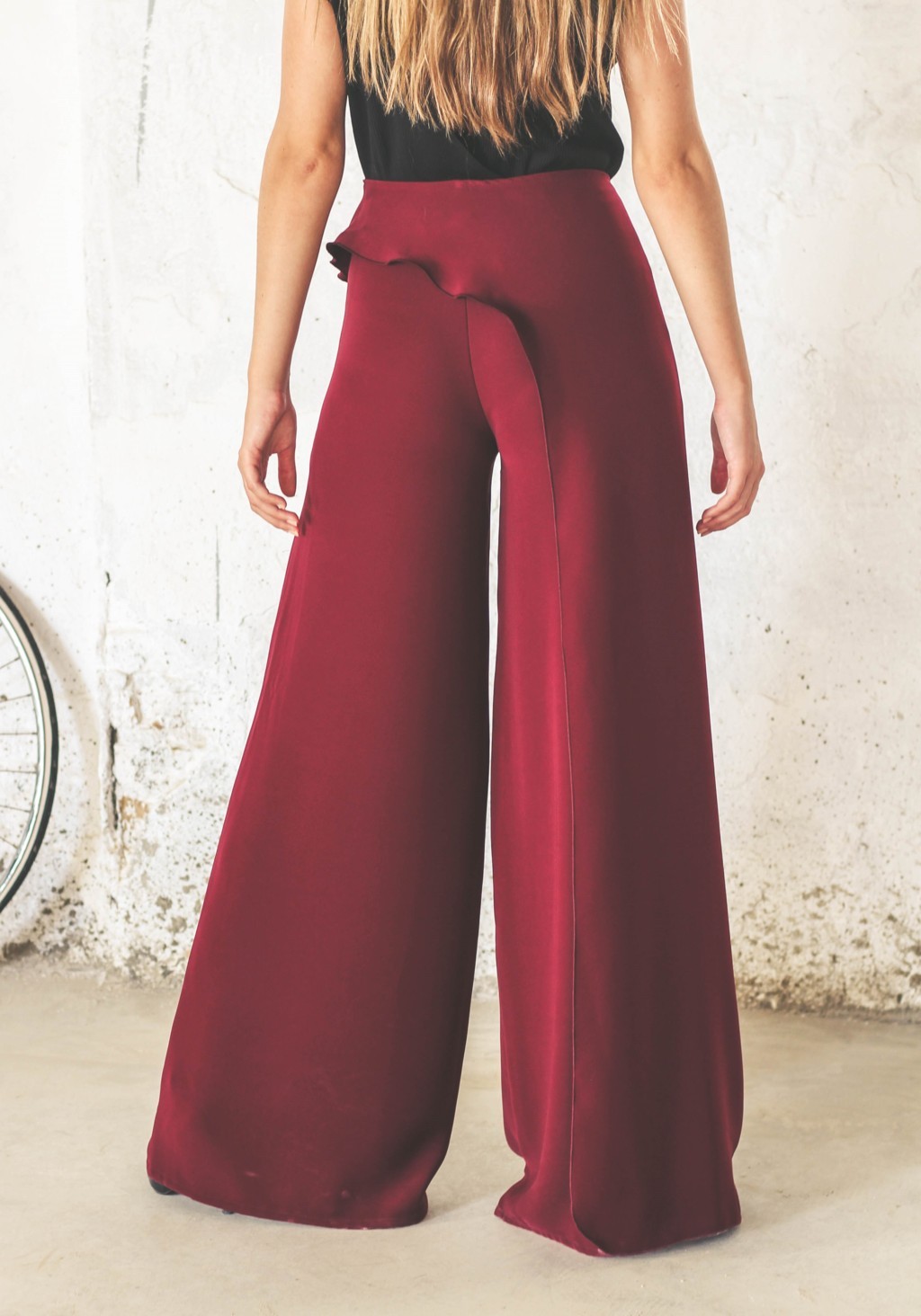 Pantalón estilo palazzo de talle alto confeccionado en crêpe.