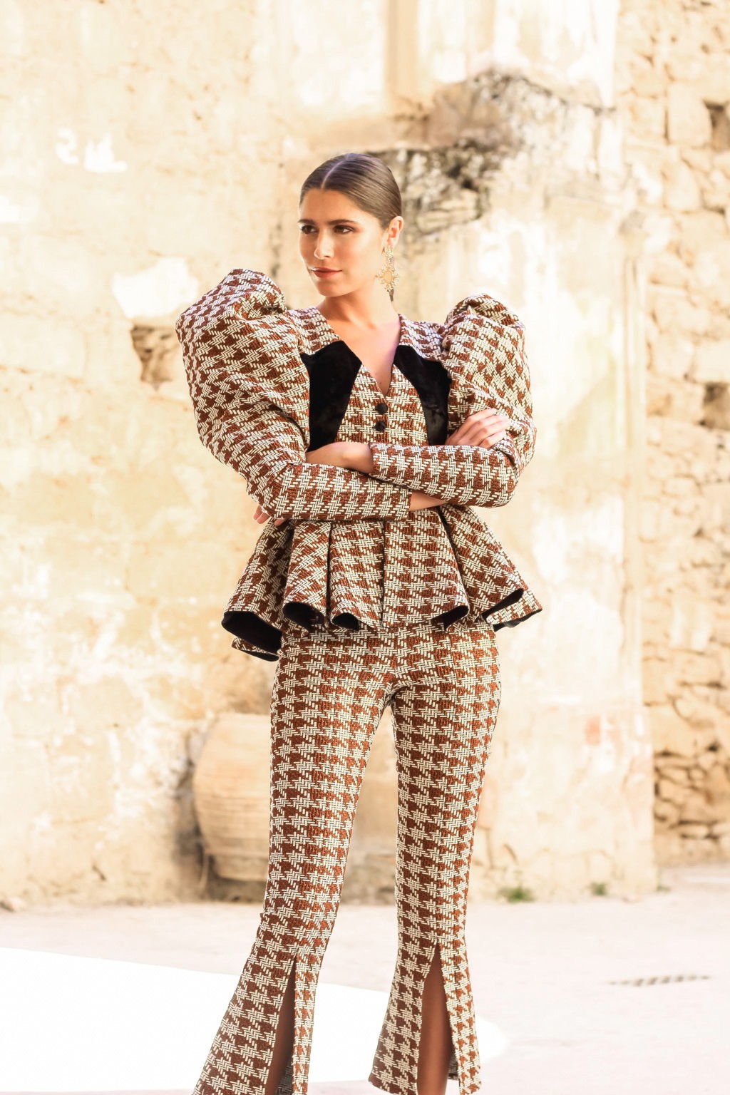 Chaqueta con contrastes simétricos en terciopelo tanto en delantero como en espalda.