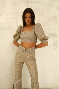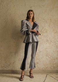 76.00€Pantalón de talle alto con abertura central en bajos, que hace un efecto campana. Cinturilla con detalle en V. Cierre con cremallera invisible en costado.