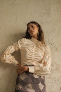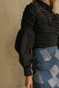 76.00€Top entallado. Confeccionado con tejido de algodón. Cuello cisne. Plisado en delantero y espalda. Mangas fruncidas y abullonadas, acabadas en puños. Cremallera invisible en espalda y costado.